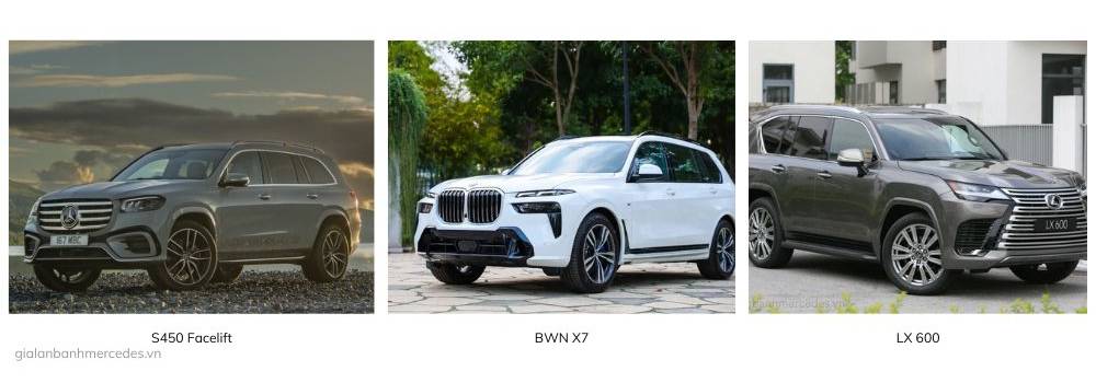 So sánh giá giữa Mercedes GLS 450 Facelift, BMW X7 và Lexus LX600: Lựa chọn nào tốt nhất cho bạn?