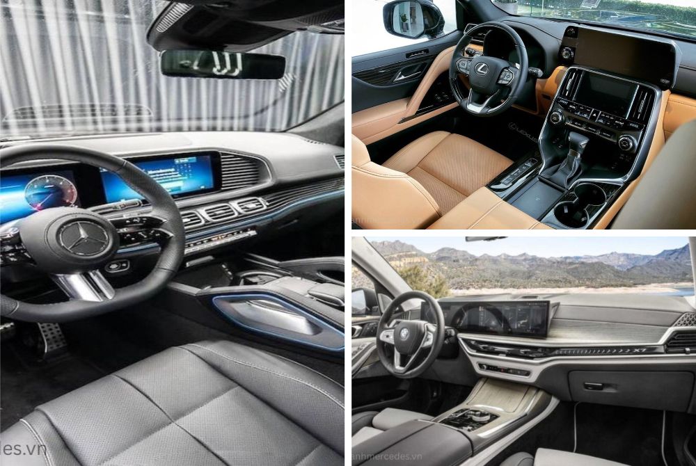 Một yếu tố quan trọng không thể bỏ qua là công nghệ trên các mẫu SUV này. Mercedes GLS 450 Facelift sở hữu hệ điều hành MBUX với khả năng hỗ trợ tiếng Việt, màn hình cảm ứng 12,3 inch, và trí tuệ nhân tạo giúp tương tác dễ dàng hơn. Hệ thống treo khí nén E-ACTIVE BODY CONTROL giúp mang lại cảm giác lái êm ái và ổn định, đặc biệt trên các cung đường dài hay khi di chuyển qua các đoạn đường xấu. Trong khi đó, BMW X7 sử dụng hệ điều hành iDrive 8.5, mạnh mẽ với khả năng điều khiển dễ dàng qua màn hình cảm ứng, nhưng chưa hỗ trợ tiếng Việt, điều này có thể gây khó khăn cho người dùng tại Việt Nam. Lexus LX600, với hệ thống Lexus Interface, có giao diện trực quan nhưng vẫn chưa thể so sánh với độ mượt mà và hiện đại của các đối thủ. Mặc dù vậy, Lexus vẫn giữ được sự ổn định và dễ dàng sử dụng trong mọi tình huống.