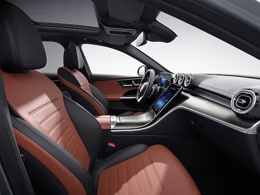 Nội thất của thế hệ C-Class mới mang ngôn ngữ thiết kế đương đại và trẻ trung: Hệ thống thông tin giải trí MBUX (Mercedes-Benz User Experience) thế hệ thứ 2 và màn hình giải trí trung tâm 30,2 cm (11,9 inch) tích hợp điều khiển cảm ứng.