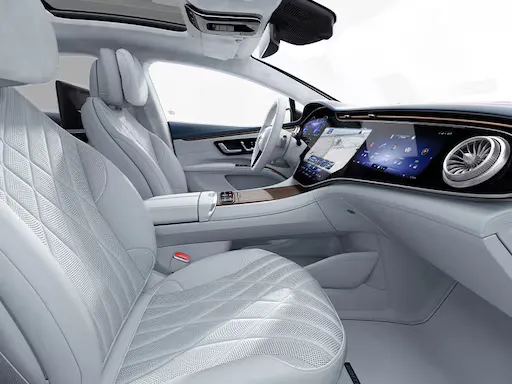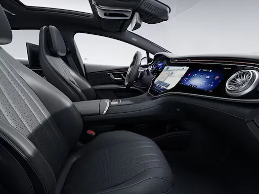 Thiết kế của tương lai: Lưới tản nhiệt đen huyền cùng biểu tượng ngôi sao ba cánh đặc trưng bên cạnh dải đèn liền mạch tạo ra điểm nhấn không thể nhầm lẫn của dòng xe thuần điện EQ. Khoang nội thất chào đón bạn bằng một không gian cấp tiến hoàn toàn mới: thông minh, sang trọng và thể thao.