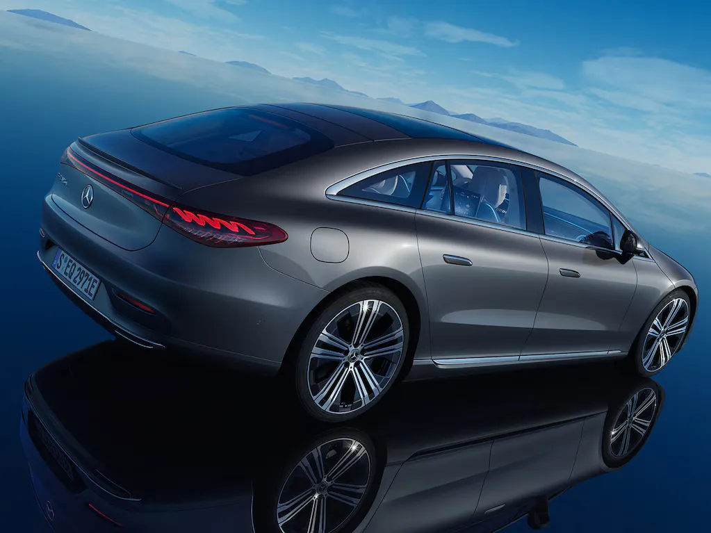 Mẫu xe thuần điện EQS là sự tổng hoà của yếu tố sang trọng và định hướng tiếp cận toàn diện. Là thế hệ sedan hạng sang đầu tiên từ Mercedes-EQ được xây dựng từ những bản phác thảo, EQS gây ấn tượng với những đường thiết kế liền mạch (one-bow design) đầy tinh tế cùng kiểu dáng coupé-esque trang nhã. Dáng vẻ năng động càng thêm trọn vẹn với bộ mâm 21 inch 5 chấu kép và cụm đèn hậu xoắn ốc 3D helix.Cửa sổ trời trượt toàn cảnh